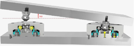 When the fixture is replaced, because it can not be absolutely horizontal, the tray tilt requirements are relatively high, this locator can solve this problem, this locator compared to other brands on the market the tilt Angle of 1.2 degrees, the tilt Angle of this locator allows 30 degrees, the locator uses a ring ball design, special nail contor-free interference design, Therefore, there is no need to ensure absolute level when hoisting the workpiece, which Riduce la difficoltà di funzionamento e il rischio di danni al posizionatore zero. Inoltre, ogni vassoio è incorporato con una manica guida di posizionamento spessa, che dovrebbe avere una certa resistenza all'impatto, consentendo alla distanza eccentrica dell'unghia di essere ± 5 mm, migliorando l'efficienza del serraggio. Il tempo di sollevamento del pallet dall'esterno della macchina al vassoio del tavolo è ridotto ai 5 minuti più veloci (incluso lo smontaggio, la rilegatura e la corsa).